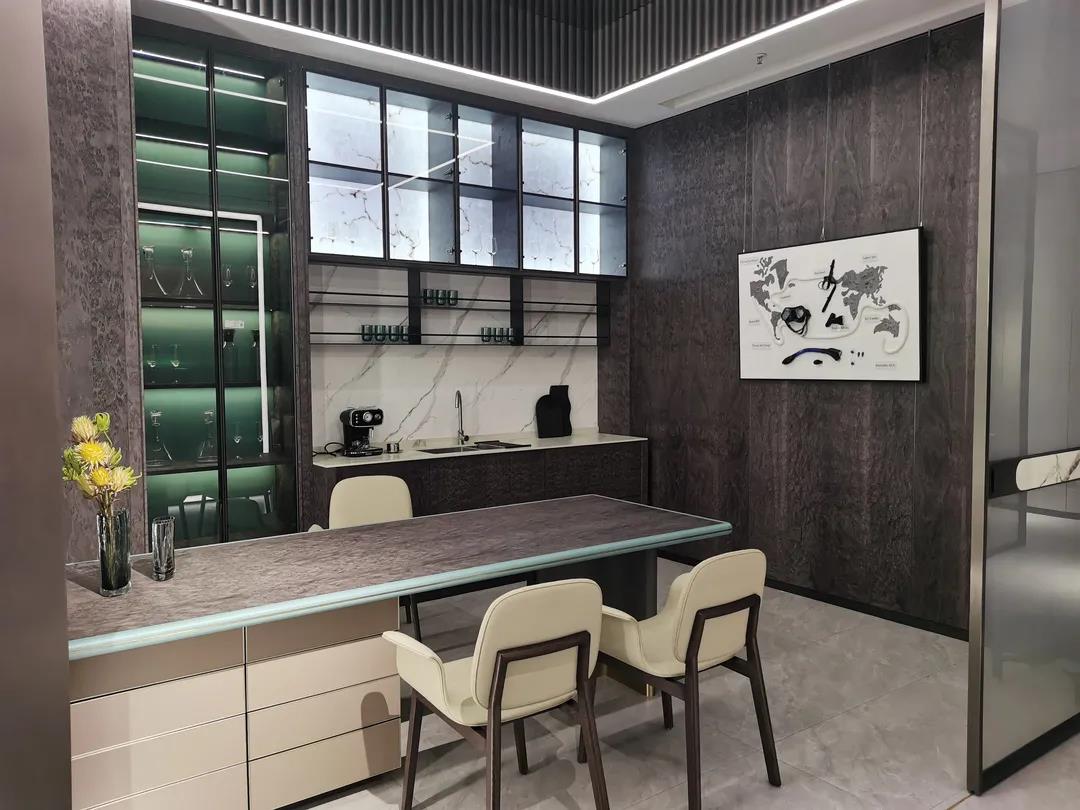在展厅现场,各系列展厅极具潮流感的空间布局和场景设计,完美呈现了当下流行的空间组合和软装搭配思维;极具时尚品位的产品设计和色彩运用,赋予产品个性鲜明、多元混搭的时尚气质,彰显了乐竞体育官网“整装定制·全案设计”产品整合优势和特色。